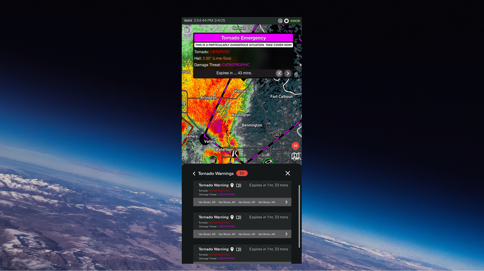 The updated alert flow was handed off to the development team for implementation, with initial internal validation conducted by professional meteorologists on the RadarOmega team. Their feedback confirmed that the redesigned hierarchy and visual logic aligned with real-world meteorological priorities—particularly the distinction between Tornado Warnings and Tornado Emergencies. While formal usability testing with end users has not yet been completed, these expert reviews ensured scientific and operational accuracy before rollout. Once development is finalized, the next phase will focus on field testing with both technical and non-technical users to evaluate clarity, speed of interpretation, and emotional response under real conditions. This staged validation approach ensures that the system not only meets meteorological standards but also translates that data into an accessible, high-trust experience for everyday users.
